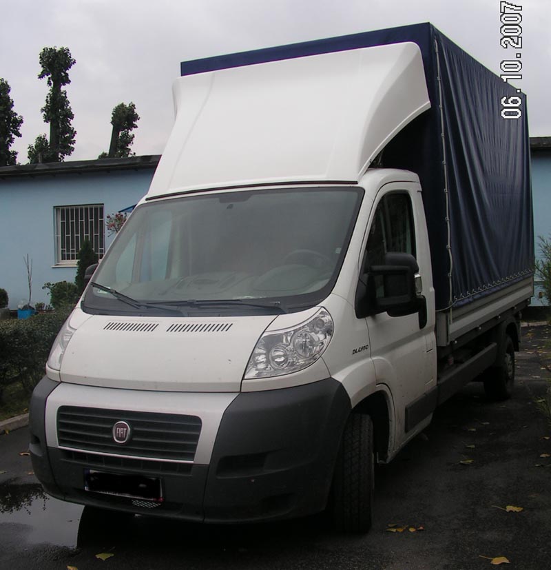 Spoiler Uniwersalny średni wykonany został z tworzywa poliestrowo-szklanego (włókno szklane – żywica), jest nowy gotowy do montażu na samochodzie. Owiewka ta została specjalnie zaprojektowana oraz dostosowana do potrzeb zastosowania jej w wielu samochodach dla których nie występują owiewki lub zabudowy posiadają niestandardowe wymiary i zachodzi konieczność indywidualnego podejścia do rodzaju i wymiarów spoilera. Wersja mała owiewki nadaje się idealnie dla większości pojazdów o DMC 3,5t , takich jak Fiat Ducato, Renault Master, Citroen Jumper, Peugeot Boxer posiadających wysoką zabudowę. Spoiler składa się z jednej części, przykręcanej do dachu za pomocą specjalnie zaprojektowanych stalowych mocowań. Owiewka posiada możliwości regulowania.